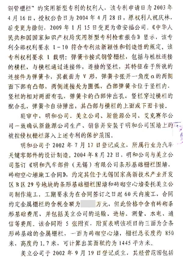 無錫帝安福VS明和、新能源判決書